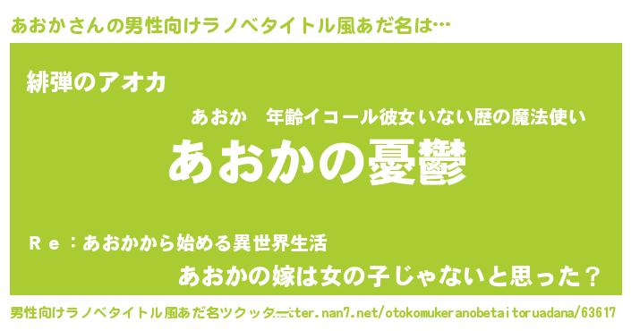 | 胡散臭い通販商品みたいなあだ名 | 『必ず成功するブレスレット…その名も「あおか」』 |
