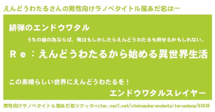 | 意味不明あだ名 | 『自称えんどうわたる』 |