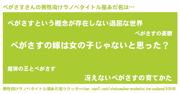 | 意味不明あだ名 | 『とにかく怪しいぺがさす』 |