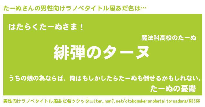 | 胡散臭い通販商品みたいなあだ名 | 『必ず成功する水晶球…その名も「たーぬ」』 |