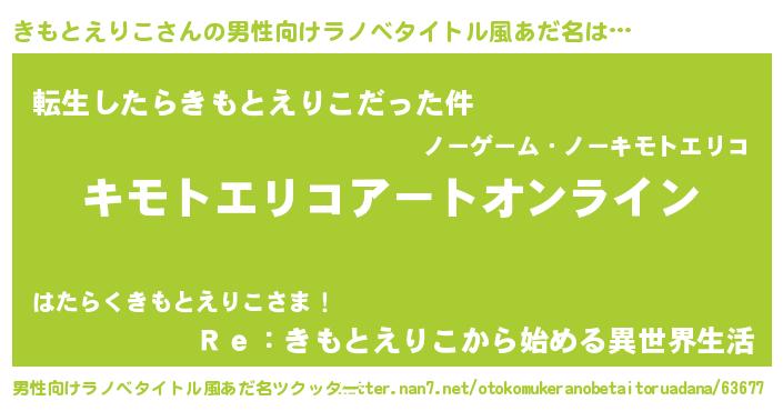 きもとえりこさんの男性向けラノベタイトル風あだ名をツクッター!