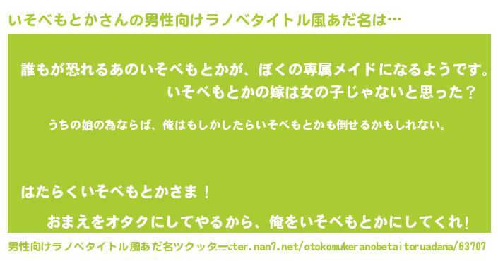 | 女子向けラノベタイトル風あだ名 | 『いそべもとかの婚約者』 |