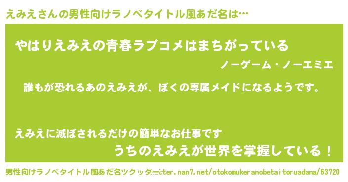 | 女子向けラノベタイトル風あだ名 | 『異世界でカフェえみえを開店しました。』 |