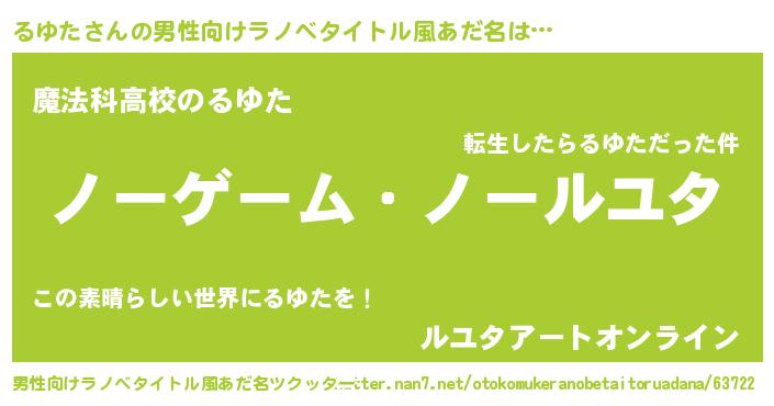 | 女子向けラノベタイトル風あだ名 | 『るゆた恋絵巻』『るゆたアンティーク』 |