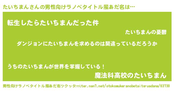| 女子向けラノベタイトル風あだ名 | 『たいちまんは平凡を望む』 |