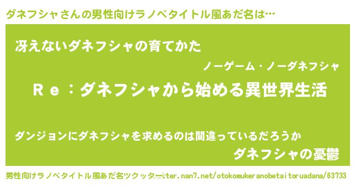 | 女子向けラノベタイトル風あだ名 | 『闇のダネフシャ』『ダネフシャ恋絵巻』 |