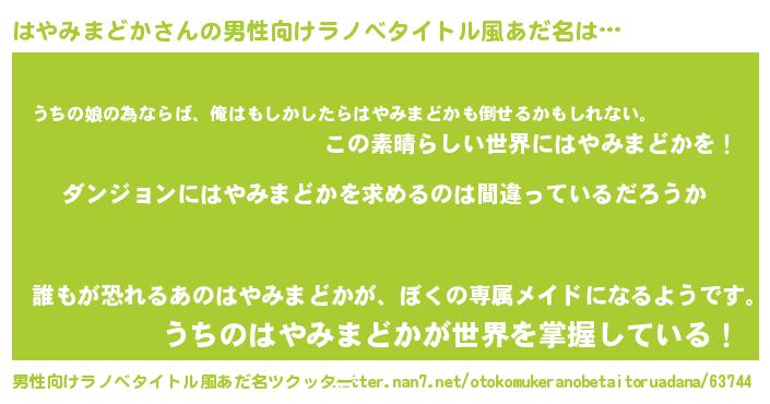 | 胡散臭い通販商品みたいなあだ名 | 『信頼と実績のネックレス…その名も「はやみまどか」』 |