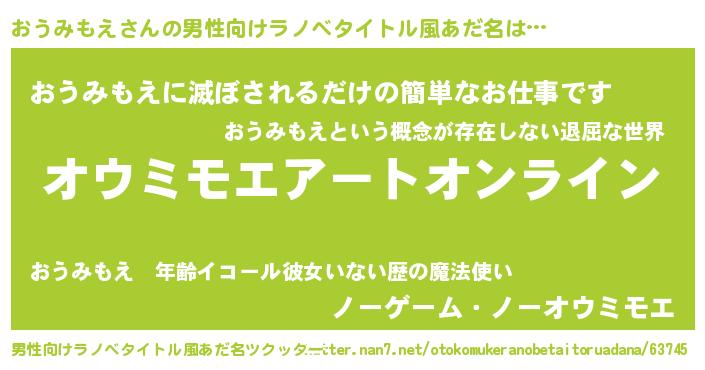| 胡散臭い通販商品みたいなあだ名 | 『億万長者になれる水晶球…その名も「おうみもえ」』 |