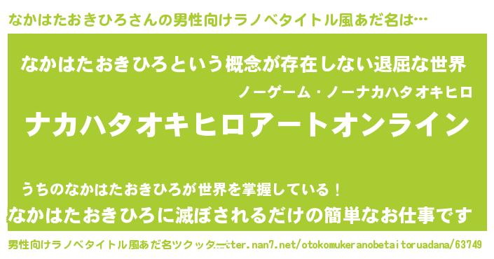 | ヘコむあだ名 | 『なかもー』『なかはたおきひろ(小並感)』 |