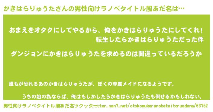 | 意味不明あだ名 | 『とにかく怪しいかきはらりゅうた』 |