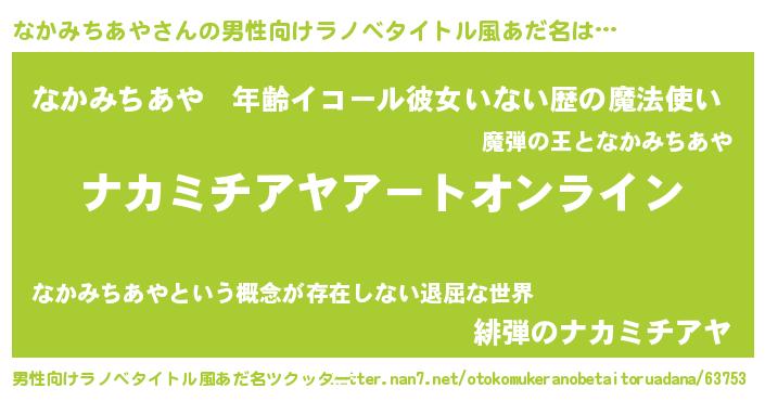 | 女子向けラノベタイトル風あだ名 | 『誰かこのなかみちあやを説明してください! ~契約から始まるウェディング~』 |