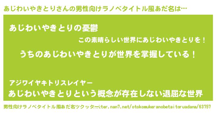 | 胡散臭い通販商品みたいなあだ名 | 『億万長者になれる水晶球…その名も「あじわいやきとり」』 |