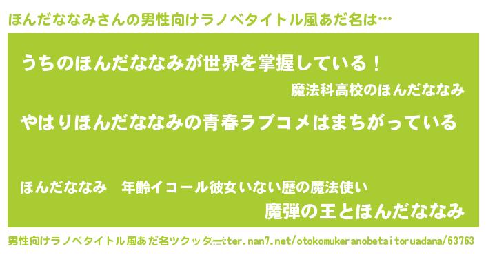 | 女子向けラノベタイトル風あだ名 | 『ほんだななみ伯爵の花嫁』 |