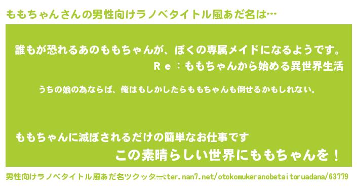 | 女子向けラノベタイトル風あだ名 | 『ももちゃん伯爵の花嫁』 |