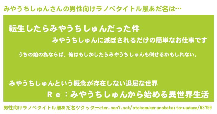 | ファンタジー風あだ名 | 『エターナルミヤウチシュンー』 |