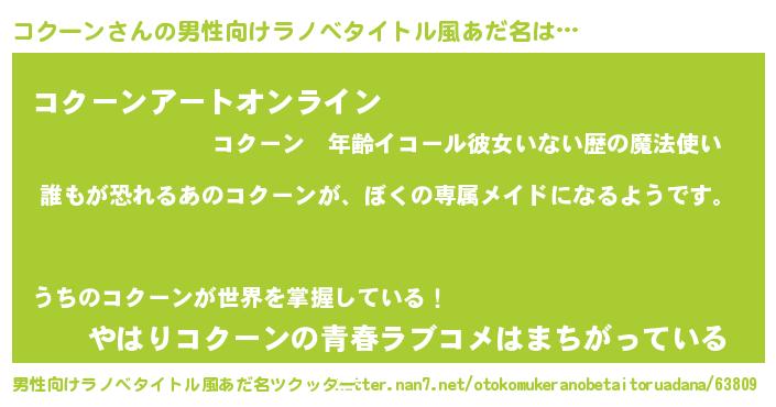 | 女子向けラノベタイトル風あだ名 | 『異世界でカフェコクーンを開店しました。』 |