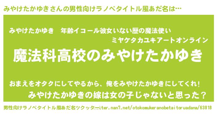 | 女子向けラノベタイトル風あだ名 | 『みやけたかゆきなんてお断りですっ。』 |