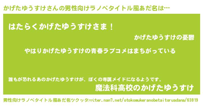 | 女子向けラノベタイトル風あだ名 | 『かげたゆうすけ伯爵の花嫁』 |