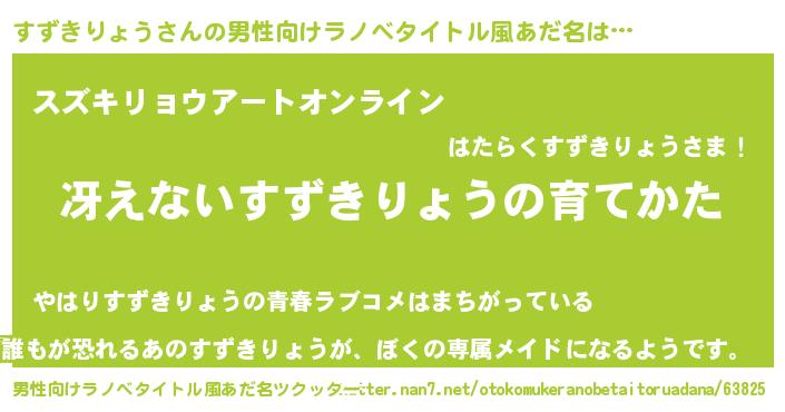 | 胡散臭い通販商品みたいなあだ名 | 『モテモテ間違いなしブレスレット…その名も「すずきりょう」』 |