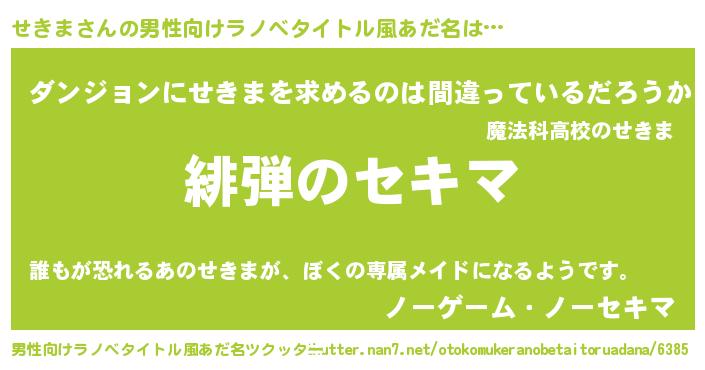 | 女子向けラノベタイトル風あだ名 | 『シンデレラせきま家の靴箱館』 |