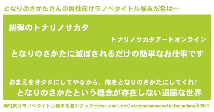 | 胡散臭い通販商品みたいなあだ名 | 『来世でも幸せになれる水素水…その名も「となりのさかた」』 |