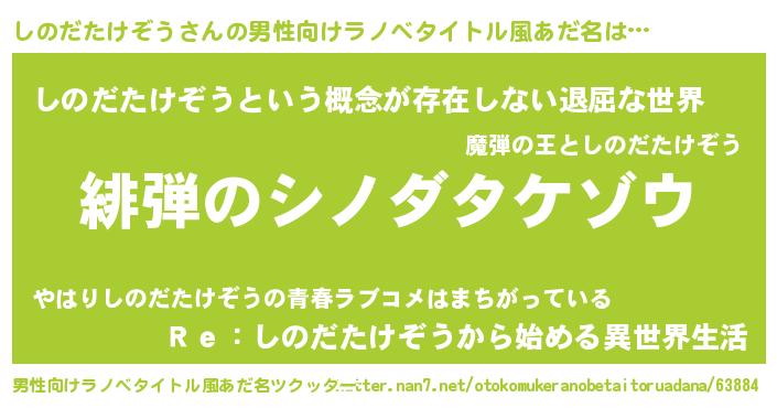 | 意味不明あだ名 | 『永久保存しのだたけぞう』 |