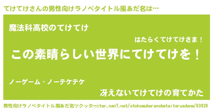 | 女子向けラノベタイトル風あだ名 | 『悪役てけてけに転生したようですが、知った事ではありません』 |