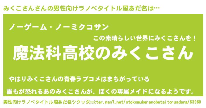 | 女子向けラノベタイトル風あだ名 | 『みくこさんアンティーク』 |