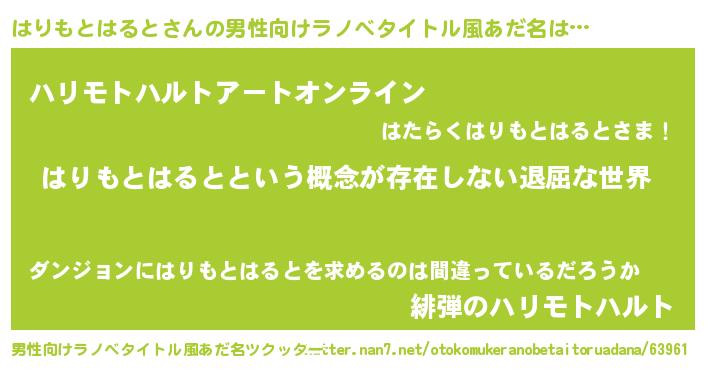| 意味不明あだ名 | 『永久保存はりもとはると』 |