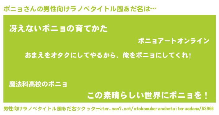 | 女子向けラノベタイトル風あだ名 | 『ポニョ夫妻のなれそめ』 |