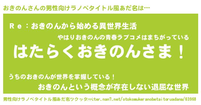 | ヘコむあだ名 | 『おきのん(爆)』『豆乳』 |