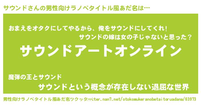 | 女子向けラノベタイトル風あだ名 | 『サウンド姫と円卓の騎士』 |