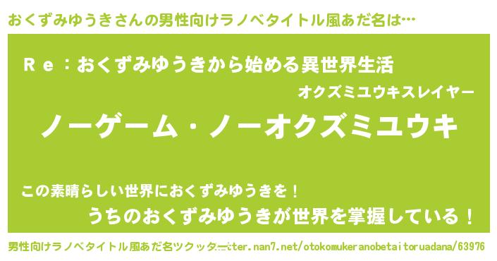 | 女子向けラノベタイトル風あだ名 | 『死神おくずみゆうきの再婚』 |