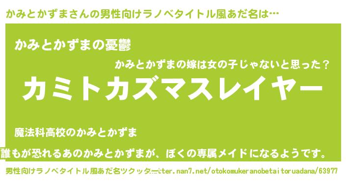 | 胡散臭い通販商品みたいなあだ名 | 『必ず成功するブレスレット…その名も「かみとかずま」』 |