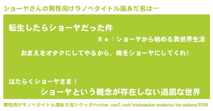| 女子向けラノベタイトル風あだ名 | 『ショーヤ恋絵巻』 |