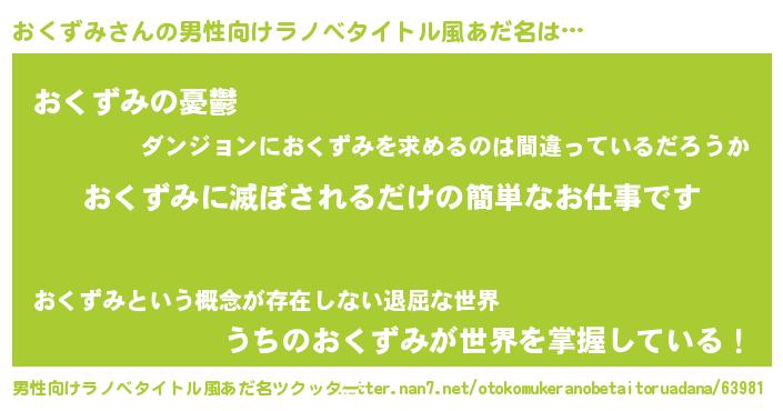 | 胡散臭い通販商品みたいなあだ名 | 『億万長者になれる霊験あらたかなお札…その名も「おくずみ」』 |