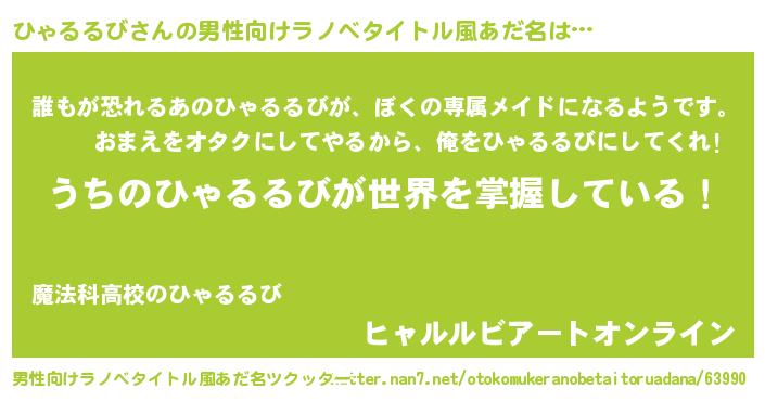 | 意味不明あだ名 | 『永久保存ひゃるるび』『自称ひゃるるび』 |