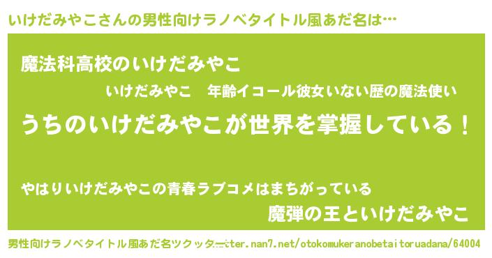 | 意味不明あだ名 | 『自称いけだみやこ』 |