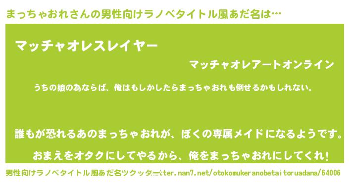 | 女子向けラノベタイトル風あだ名 | 『まっちゃおれの婚約者』 |