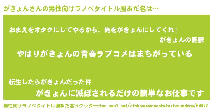 | 意味不明あだ名 | 『がきょんフォーエバー』『自称がきょん』 |