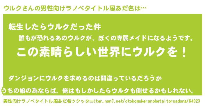 | 意味不明あだ名 | 『住所不定無職ウルク(13歳)』 |