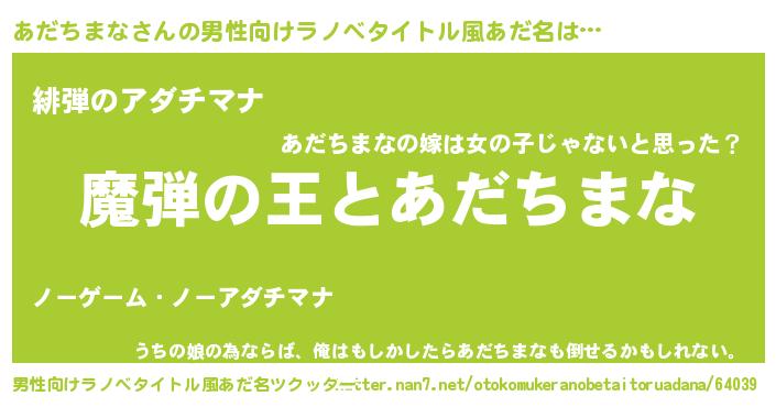 | 女子向けラノベタイトル風あだ名 | 『あだちまなが死なない童話 林檎のあだちまなの診療簿』 |