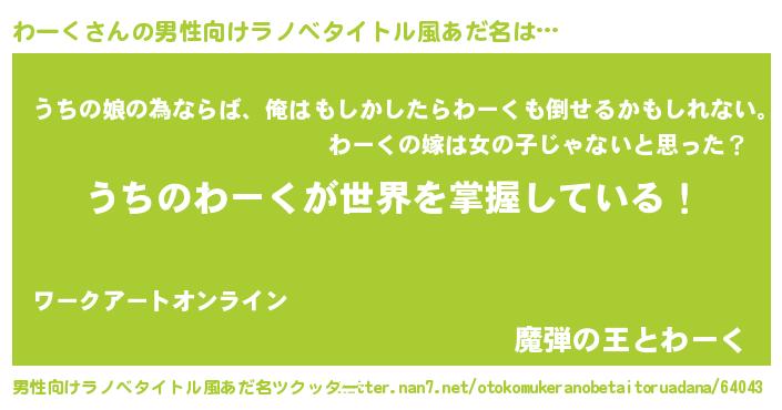 | 胡散臭い通販商品みたいなあだ名 | 『運命の人と巡り会える高級そうな壺…その名も「わーく」』 |