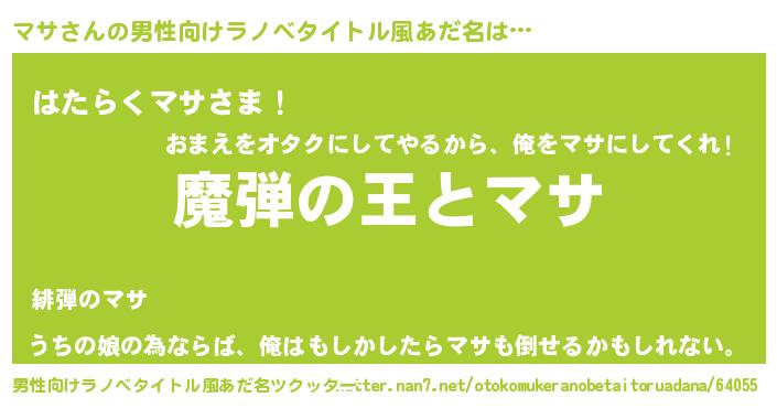 女子向けラノベタイトル風あだ名 | 『乙女ゲームの破滅フラグしかない悪役マサに転生してしまった…』 |