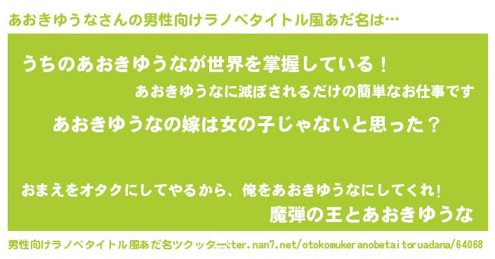 | 女子向けラノベタイトル風あだ名 | 『あおきゆうなの卵を拾いまして』 |