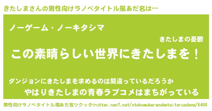 | 意味不明あだ名 | 『住所不定無職きたしま(47歳)』 |