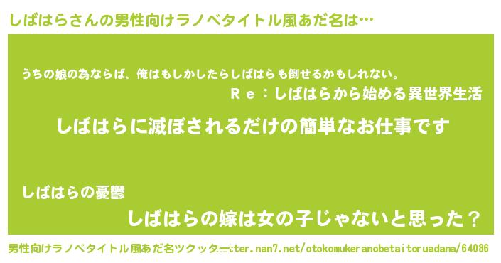 | ファンタジー風あだ名 | 『エターナルシバハラー』『ゼシバトゥ』 |