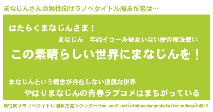 | 胡散臭い通販商品みたいなあだ名 | 『あなたにだけ特別に提供する世界で10本だけ現存している希少なブランデー…その名も「まなじん」』 |