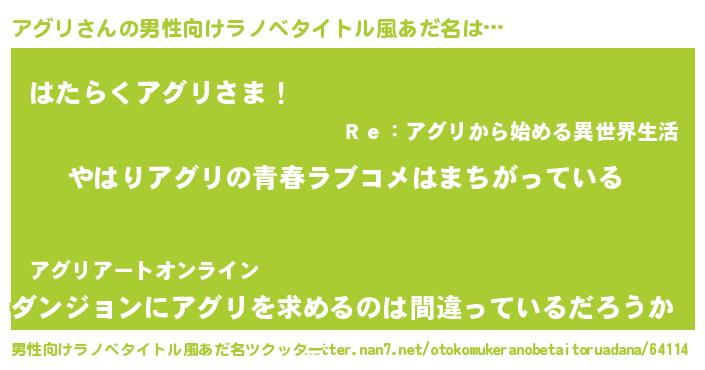 | 女子向けラノベタイトル風あだ名 | 『アグリの雑貨屋さん』『闇のアグリ』 |