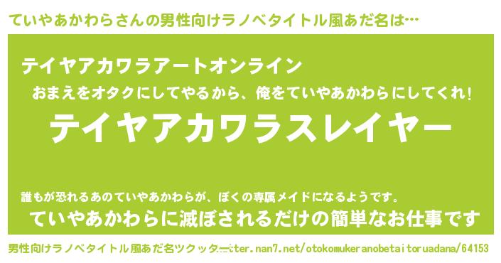 | 胡散臭い通販商品みたいなあだ名 | 『必ず成功するブレスレット…その名も「ていやあかわら」』 |